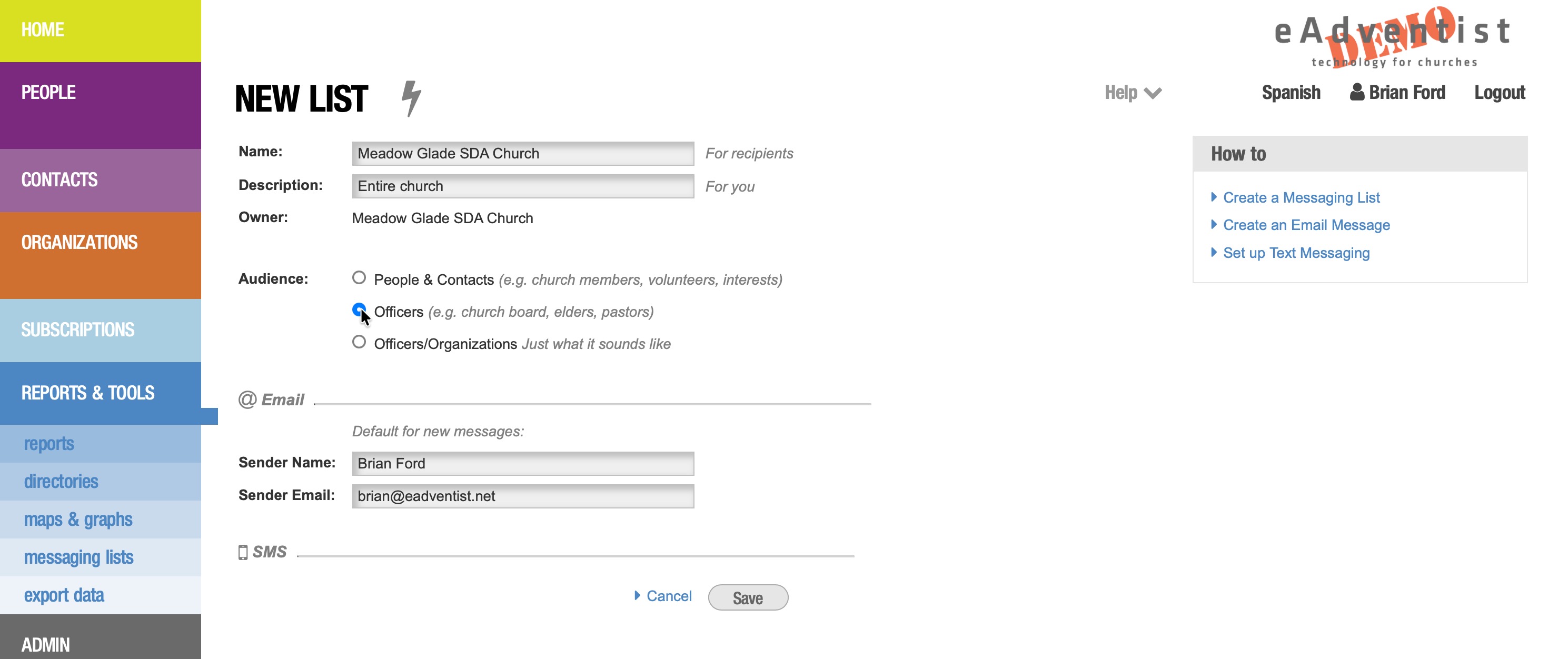 Solo toma unos pocos pasos crear una nueva Lista de Mensajería para Oficiales: una forma poderosa de comunicarse con los oficiales de su iglesia o conferencia mediante correo electrónico y mensajes de texto.